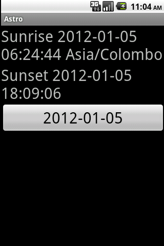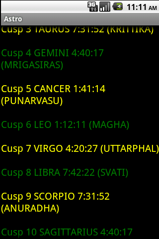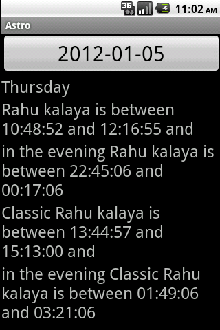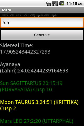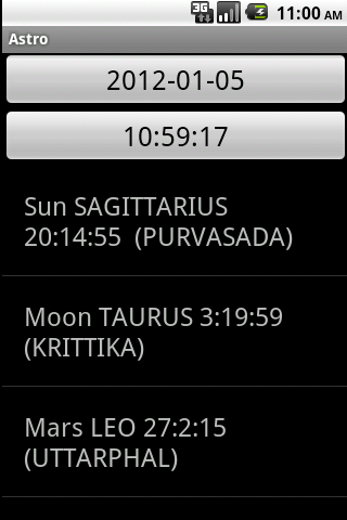 (Note: Both these apps require a network data connection to obtain longitude and latitude info. This is required for accurate sunrise/sunset calculations which in vedic astrology herald the start and end of the day)